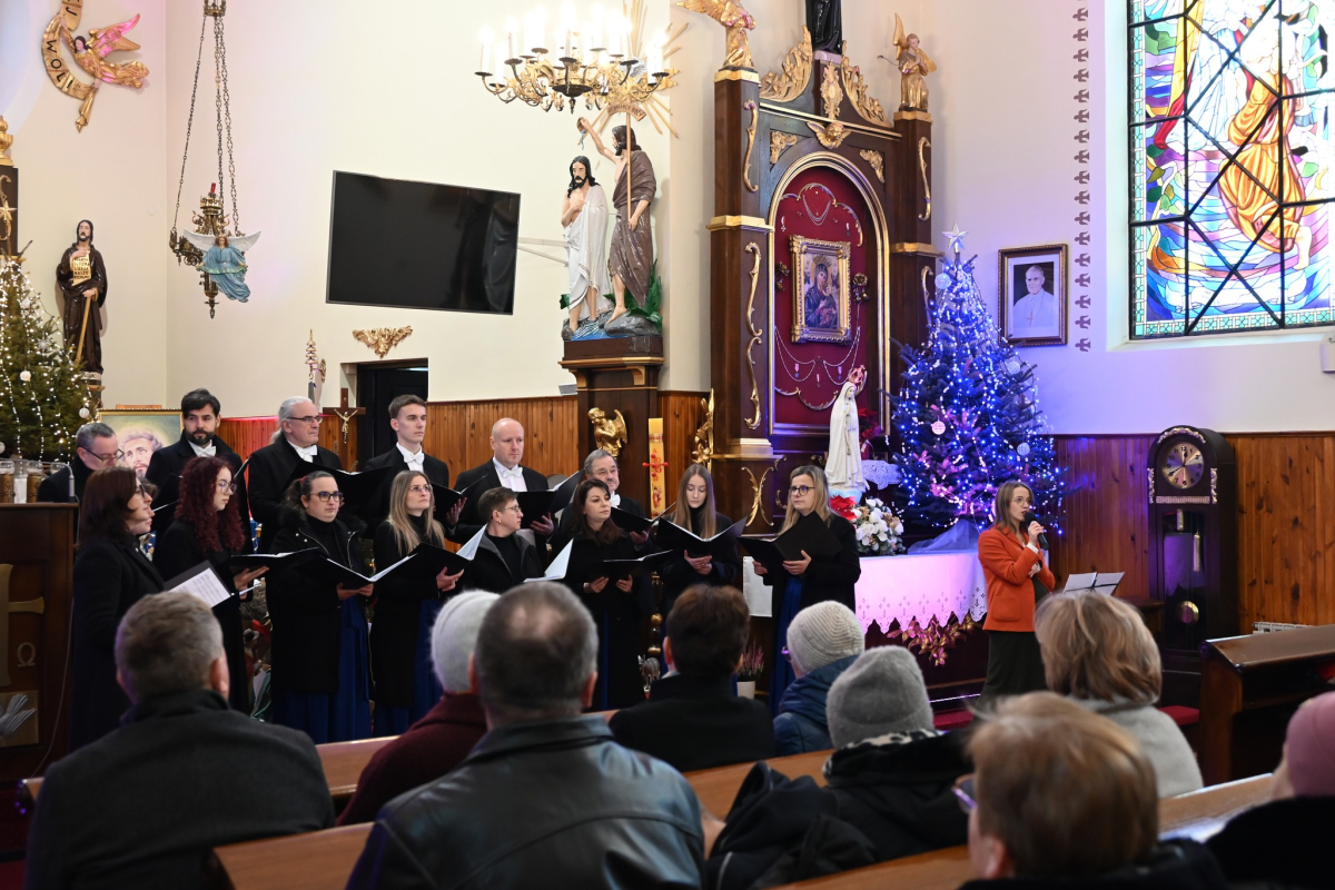 Miniony weekend w Naszej Gminie Wiśniew był nie tylko świętem muzyki, ale przede wszystkim festiwalem dobroci Mieszkańcy Gminy Wiśniew wysłuchali dwóch wyjątkowych koncertów kolęd. Wydarzenia połączyły wysoką klasę artystyczną z solidarnością lokalnej społeczności. W kościele w Radomyśli bożonarodzeniowe pieśni zaprezentował w wyjątkowej harmonii głosów Chór Miasta Garwolina pod kierunkiem Aleksandry Bienias. Wielogłosowe, profesjonalne wykonania tradycyjnych kolęd w murach świątyni wprawiły słuchaczy w zachwyt i skłoniły do refleksji. W Wiejskim Domu Integracji w Borkach-Paduchach piękną atmosferę kolęd i pastorałek stworzył Zespół Wokalny UliBabki, którym dyrygowała Urszula Chruściel przy akompaniamencie Marcina Chojeckiego. Energetyczne i radosne kolędowanie szybko porwało obecnych do wspólnego śpiewu, tworząc ciepłą, rodzinną atmosferę. Dziękujemy artystom obu zespołów za pasję i radość wspólnego śpiewu które na długo pozostaną w pamięci.