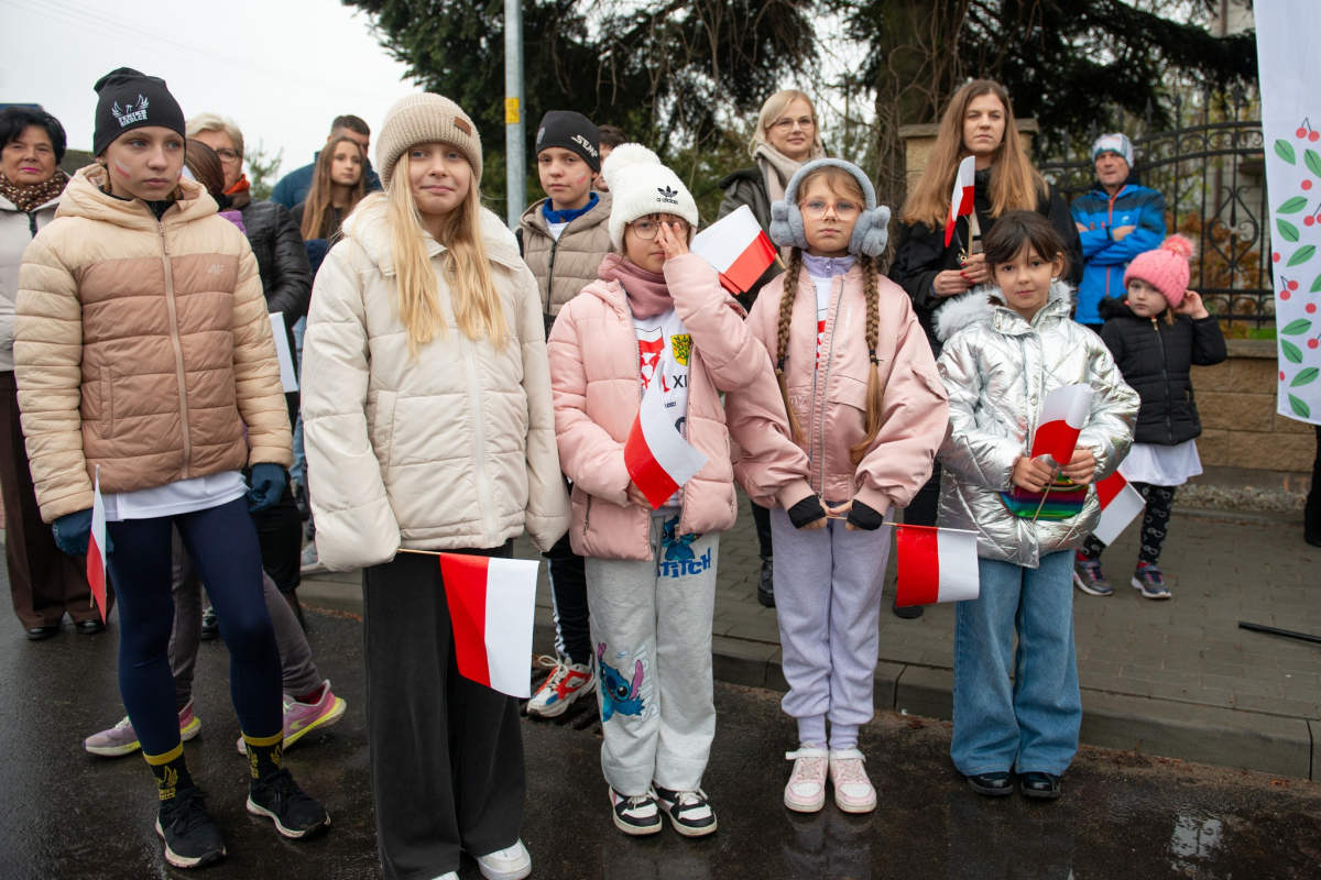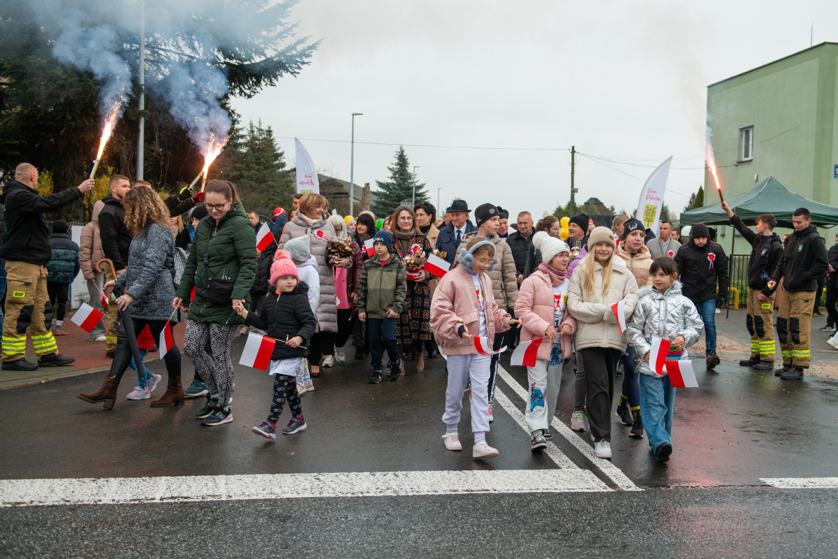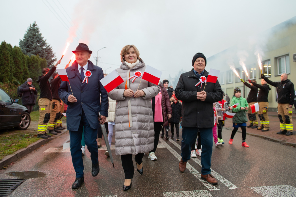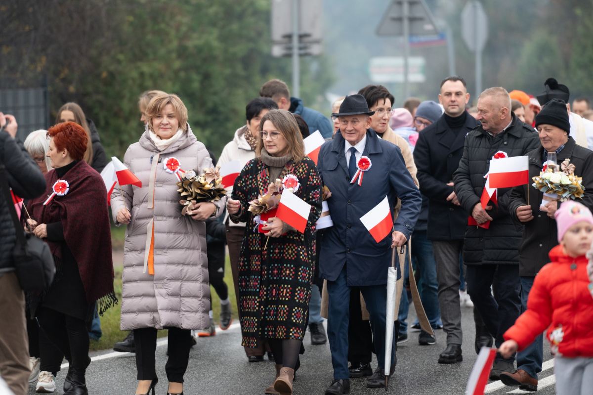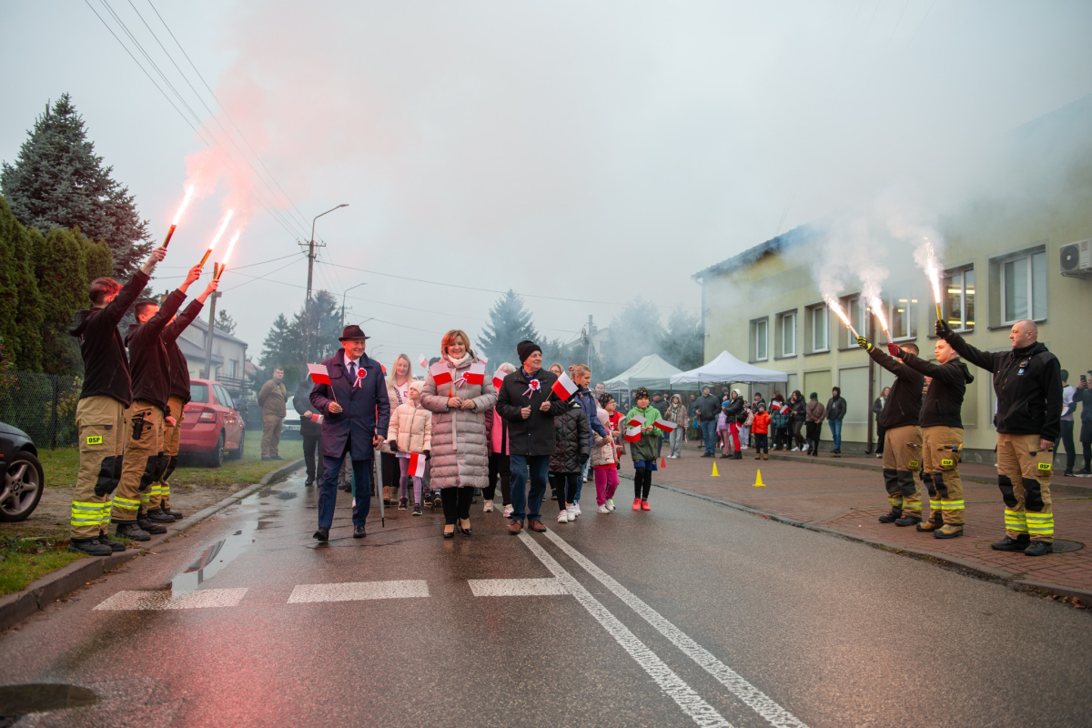 Następnie zorganizowano pochód patriotyczny. Uczestnicy z biało-czerwonymi flagami, wyruszyli spod Gminnego Ośrodka Kultury i przeszli główną trasą, zmierzając do ulicy Bankowej.