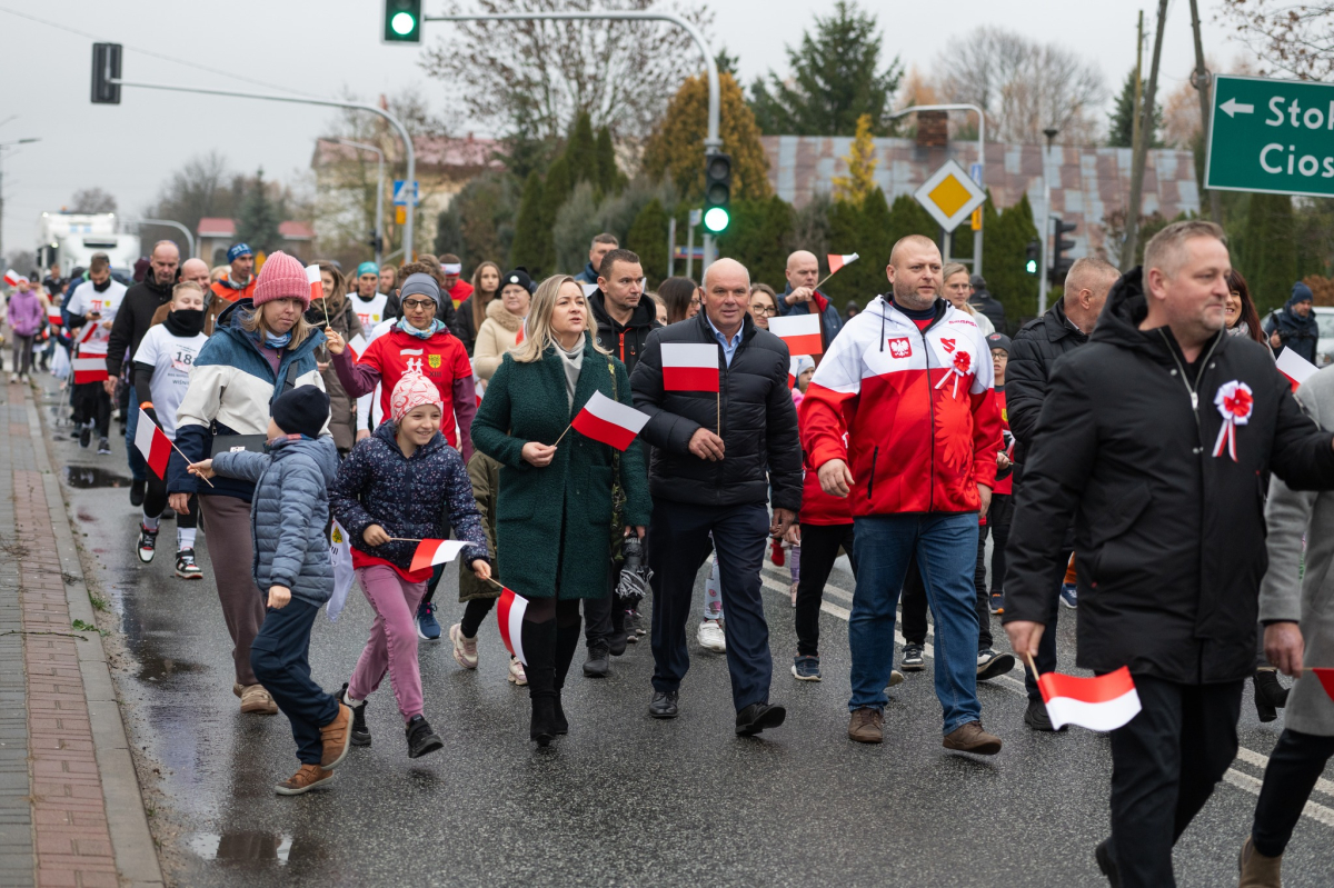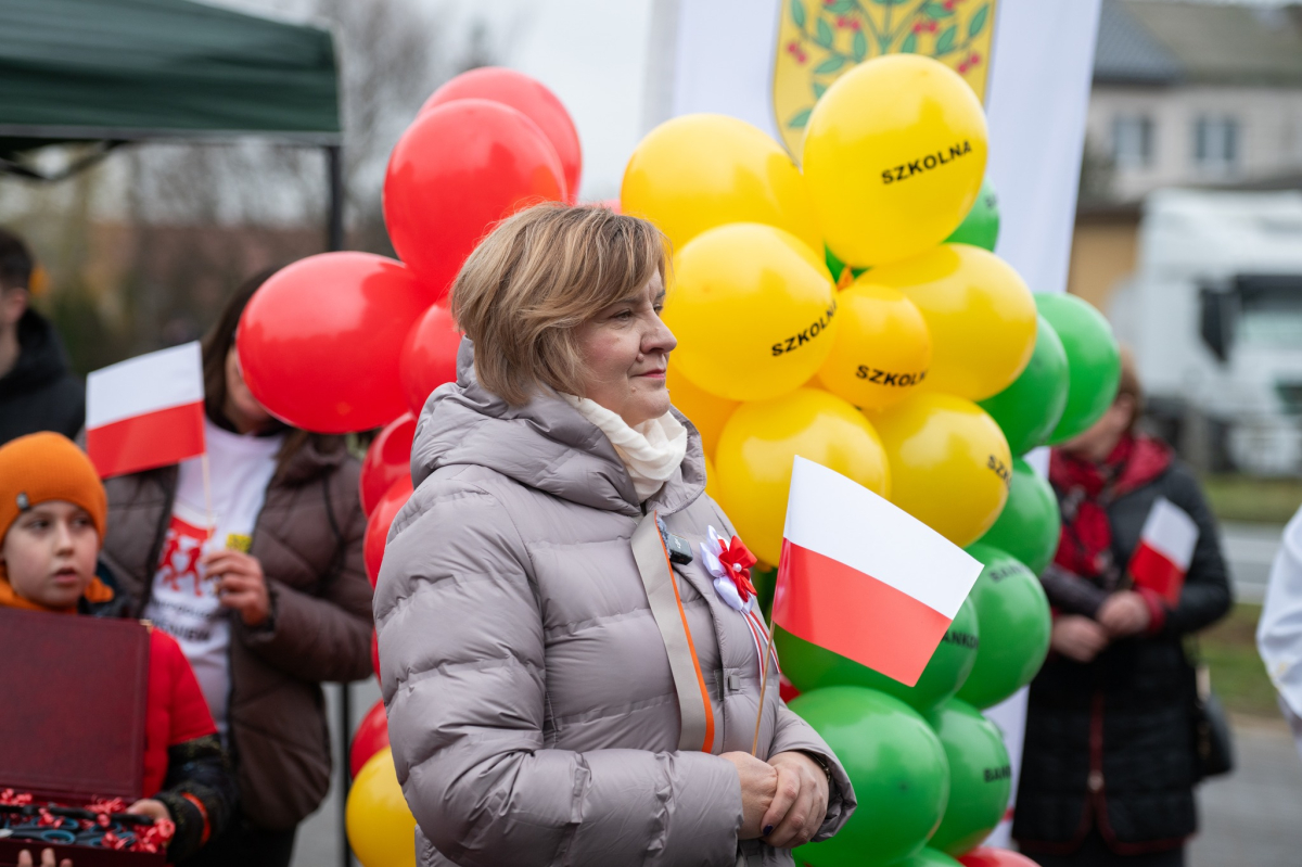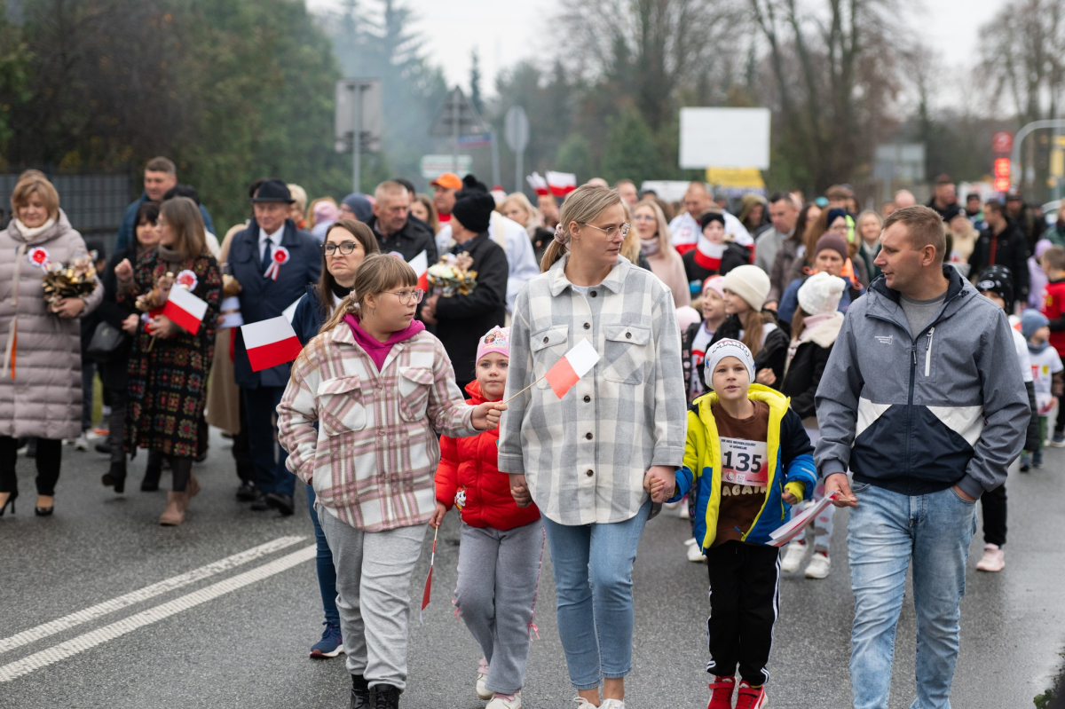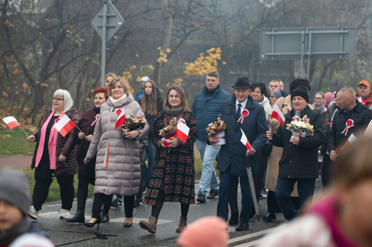 Następnie zorganizowano pochód patriotyczny. Uczestnicy z biało-czerwonymi flagami, wyruszyli spod Gminnego Ośrodka Kultury i przeszli główną trasą, zmierzając do ulicy Bankowej.
