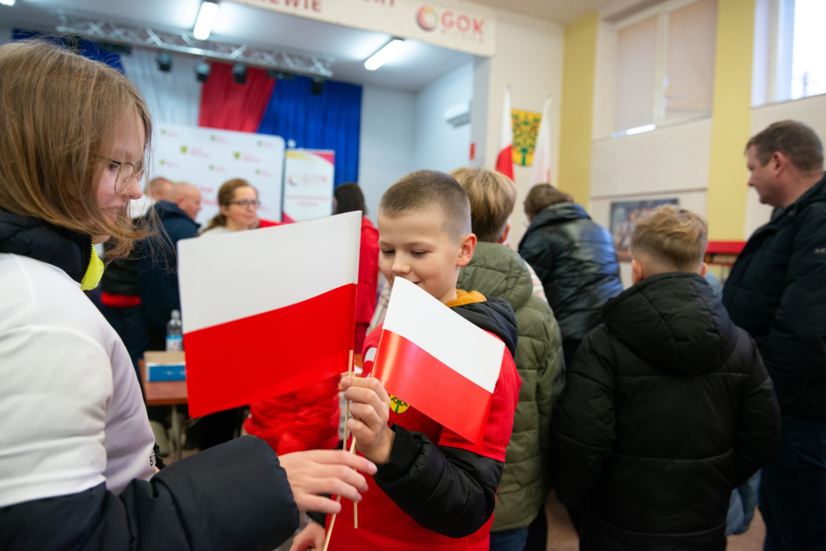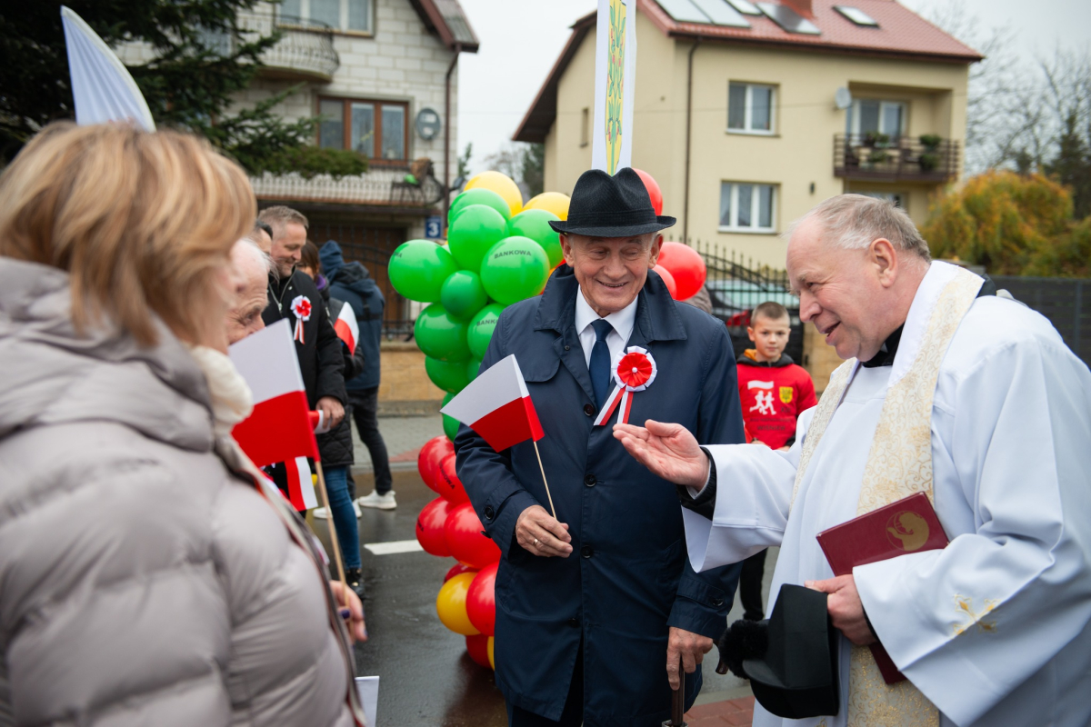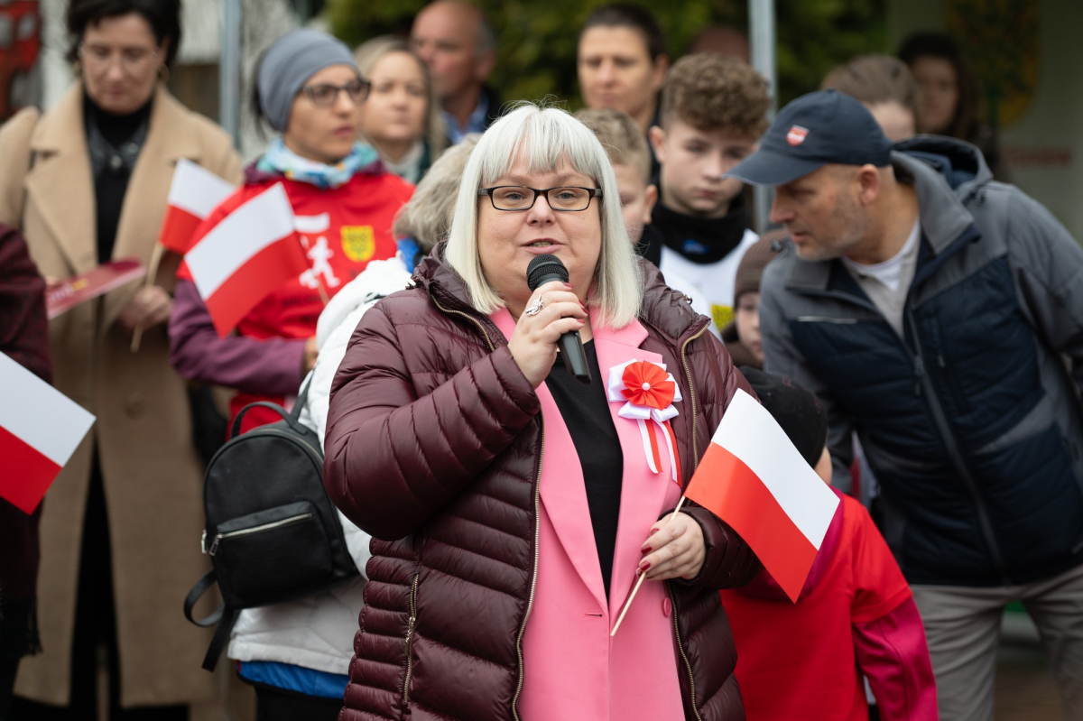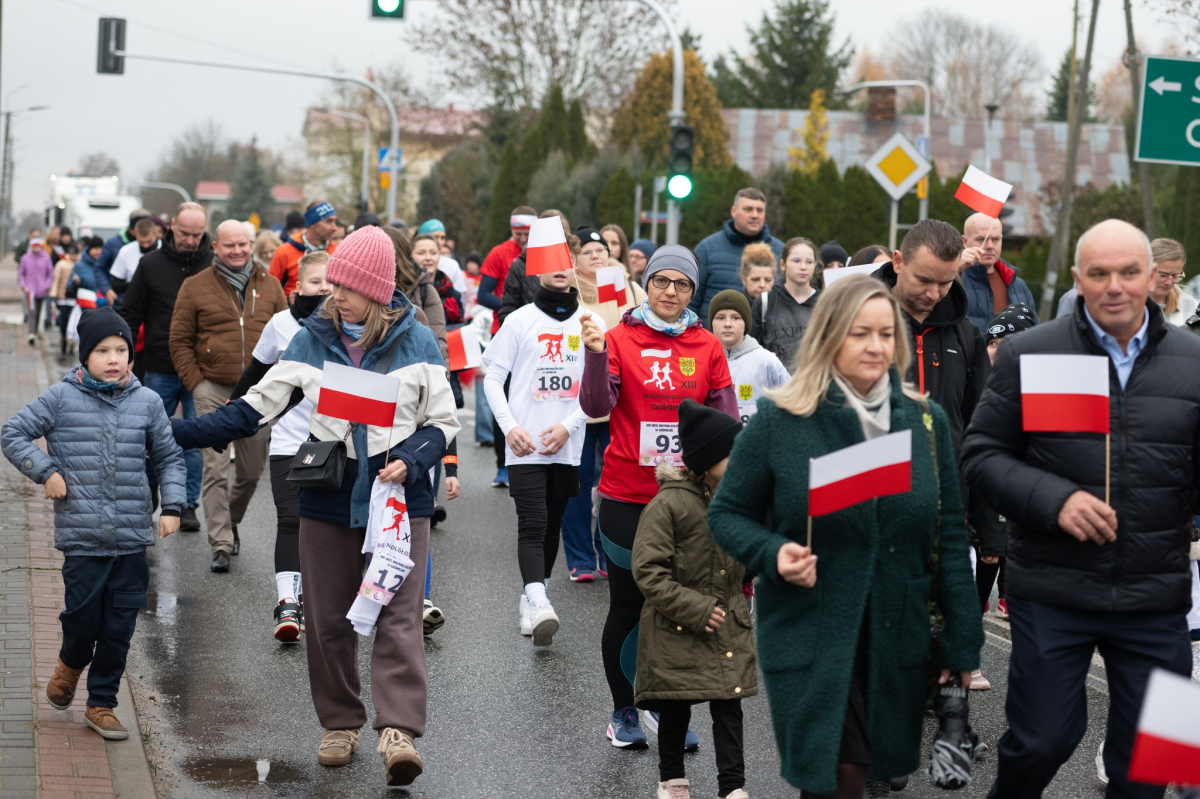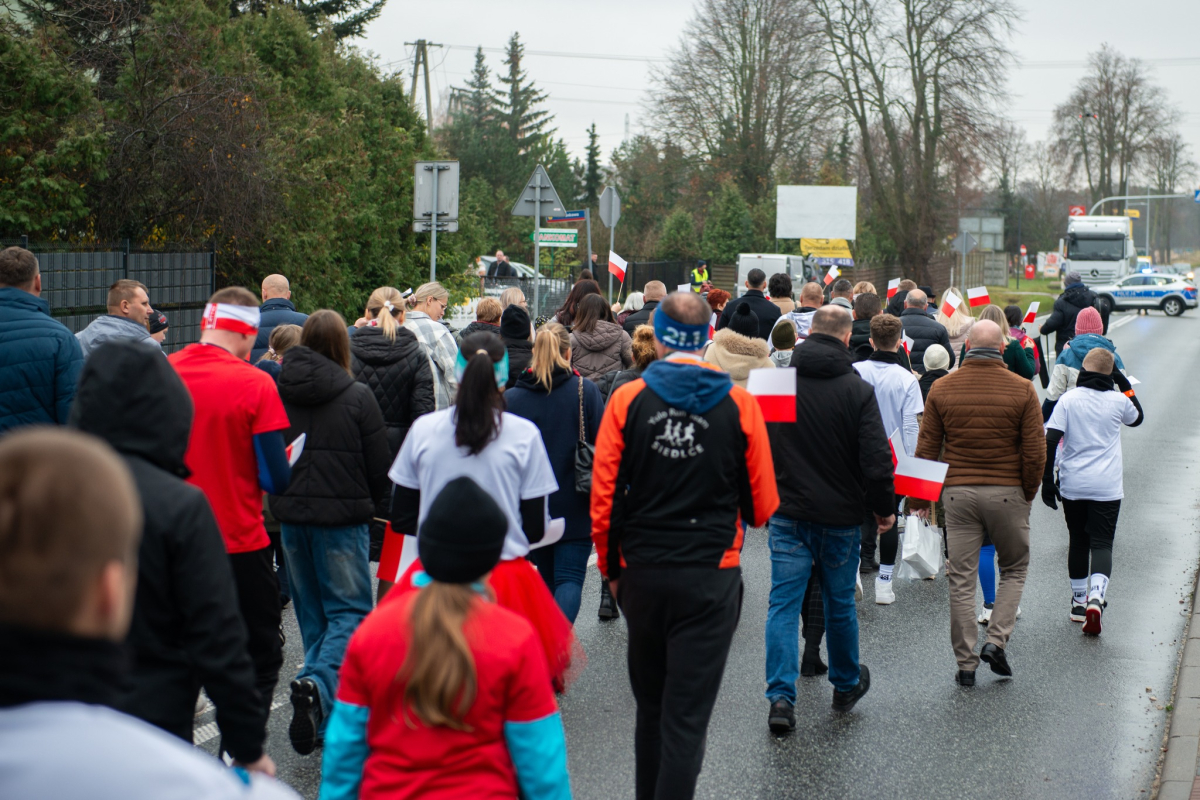 Następnie zorganizowano pochód patriotyczny. Uczestnicy z biało-czerwonymi flagami, wyruszyli spod Gminnego Ośrodka Kultury i przeszli główną trasą, zmierzając do ulicy Bankowej.