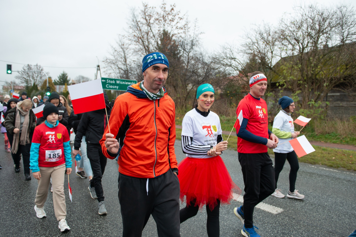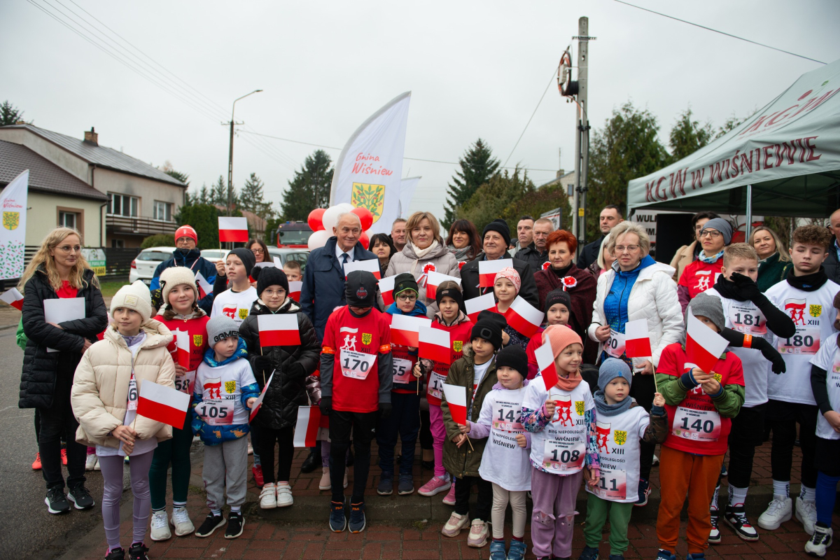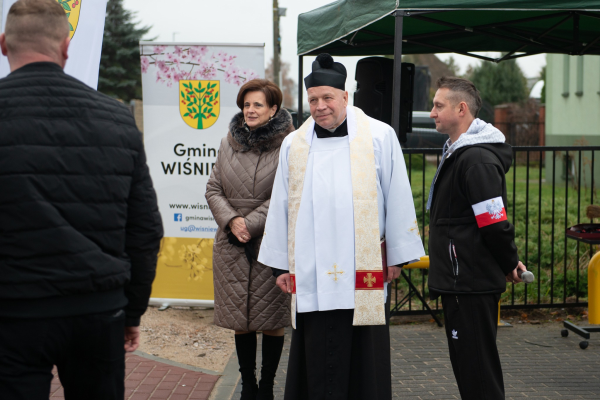 Uroczystości rozpoczęły się pod pomnikiem przy budynku Urzędu Gmina Wiśniew, gdzie miała miejsce ceremonia złożenia wieńca i oddania hołdu bohaterom przez uczestników XIII Biegu Niepodległości oraz Wójt Barbarę Rybaczewską. To doniosły moment podkreślający pamięć o tych, którzy walczyli o wolność Ojczyzny.