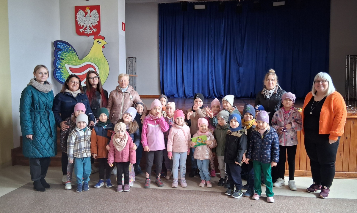 Odwiedziły nas dzieci z przedszkola i klas 0 z Zespół Oświatowy w Wiśniewie, przynosząc ze sobą mnóstwo radości, uśmiechu i świątecznej atmosfery. Maluchy złożyły nam piękne życzenia oraz wręczyły własnoręcznie przygotowaną kartkę świąteczną.