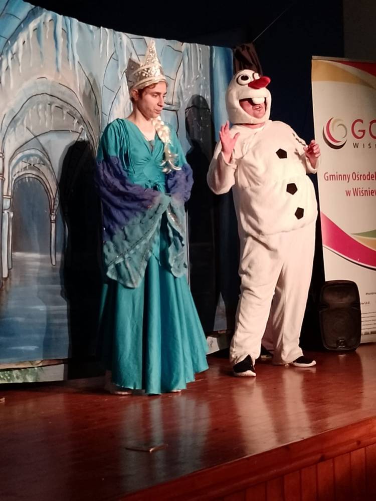 Wczoraj, 5.02.2025, do Gminnego Ośrodka Kultury w Wiśniewie przyjechali aktorzy z Teatru “Krak-Art” ze spektaklem teatralnym pod tytułem “Lodowa Kraina”. Dzieci z wielkim zaciekawieniem oglądały przedstawienie śledząc losy dwóch sióstr. Bajka przeniosła młodych widzów w niezwykły, magiczny świat lodu, śniegu, Elzy, Anny i Olafa. Pokazała, że prawdziwa miłość potrafi pokonać najcięższe mrozy i rozgrzać serca na nowo. Dzieci w skupieniu obejrzały widowisko, żywiołowo reagując na pojawiające się postaci i ich pytania. Spektakl na pewno pozostał w pamięci naszych najmłodszych widzów :)
