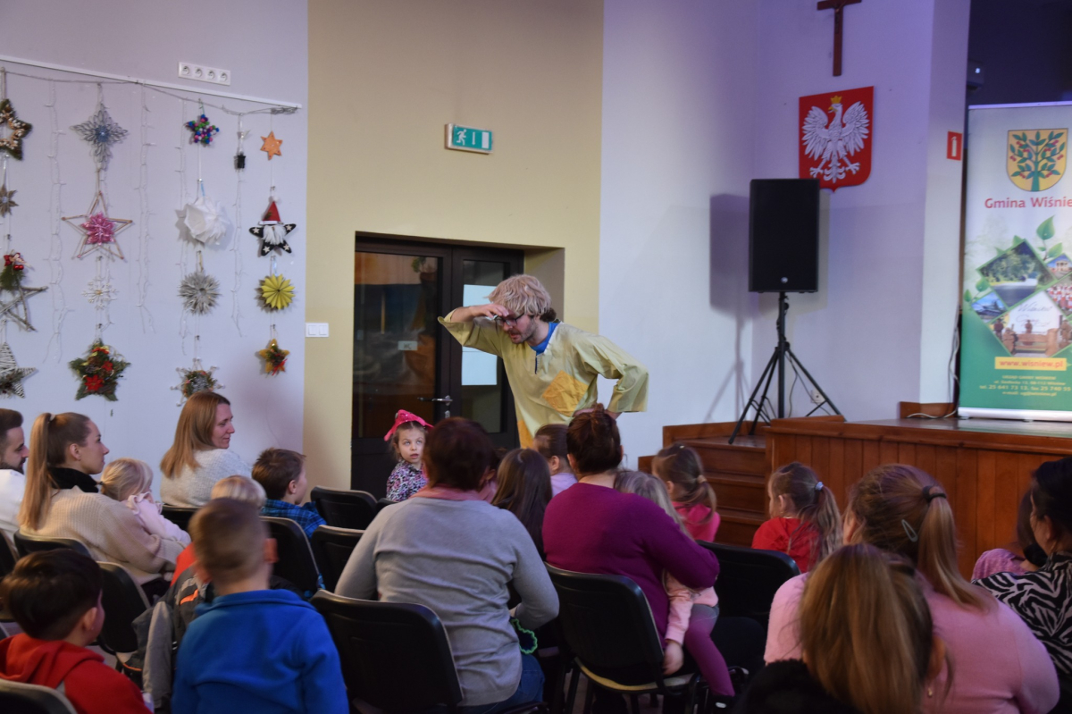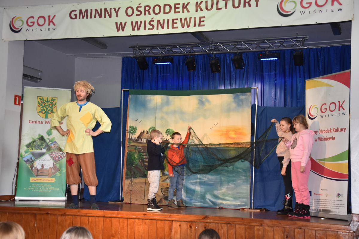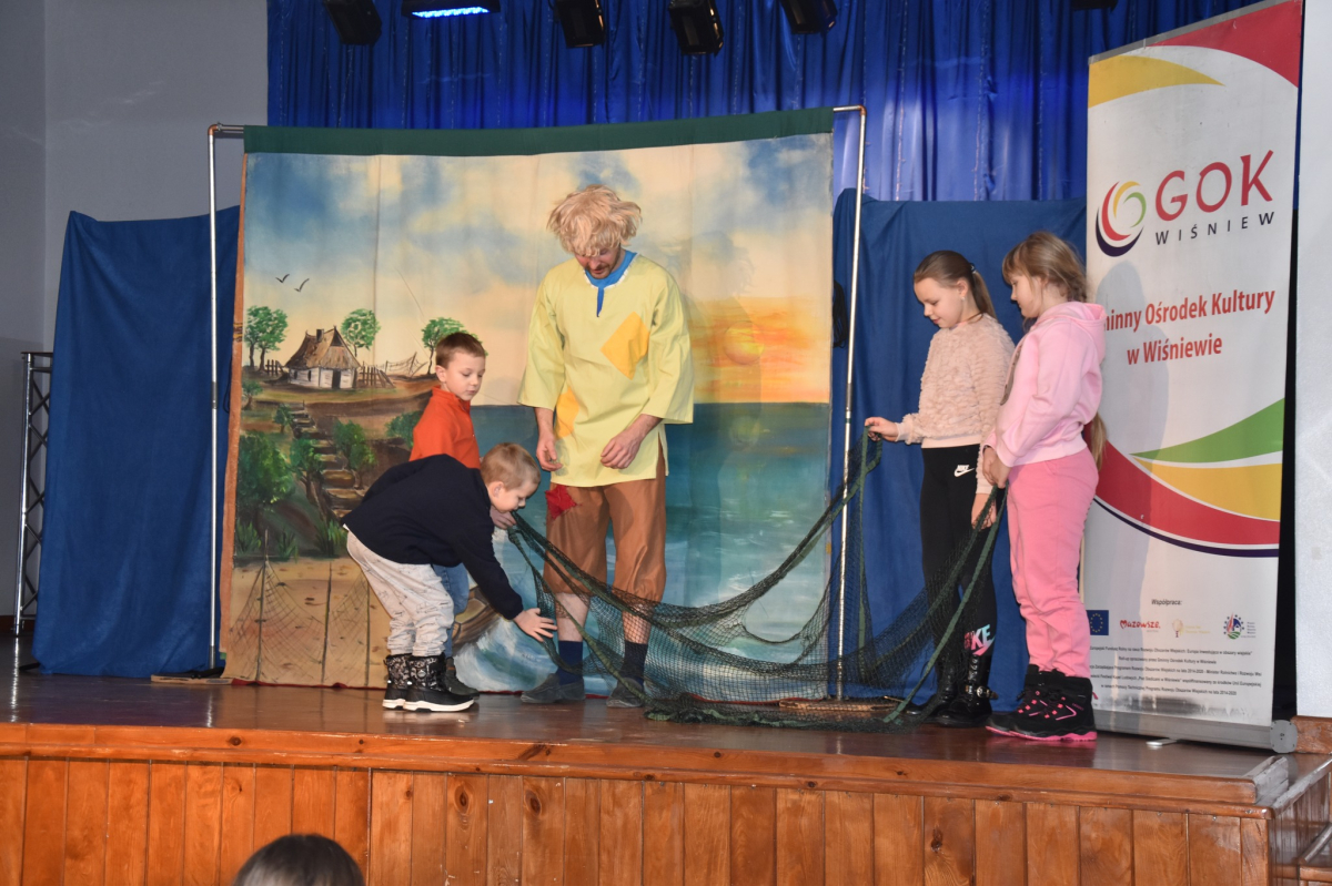 20.01.2026 w Gminnym Ośrodku Kultury odbył się interaktywny spektakl Studia Teatralnego KRAK-ART pt. „Złota Rybka”. Młoda publiczność z dziecięcym entuzjazmem brała udział w przedstawieniu, niektórzy mieli nawet okazję sprawdzić się w roli rybaków i zarzucić prawdziwą sieć rybacką a następnie przemienić się w kolorowe rybki! Nie zabrakło też wspólnego zdjęcia na scenie, które było pięknym zakończeniem tego wyjątkowego spotkania. Dziękujemy artystom oraz wszystkim uczestnikom za radosną atmosferę i wspólnie spędzony czas. Do zobaczenia na kolejnych wydarzeniach!