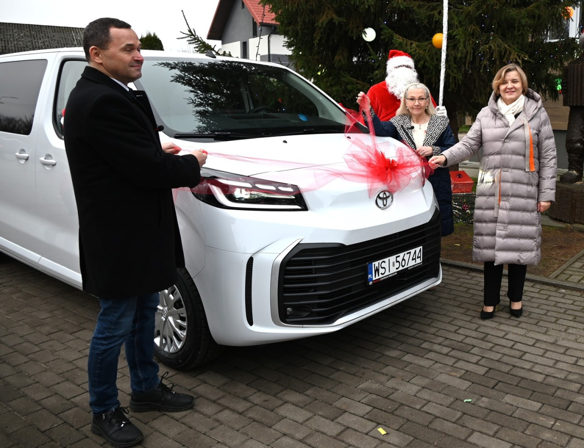 Zakupiony 9-osobowy mikrobus jest przystosowany do przewozu osób poruszających się na wózkach inwalidzkich.