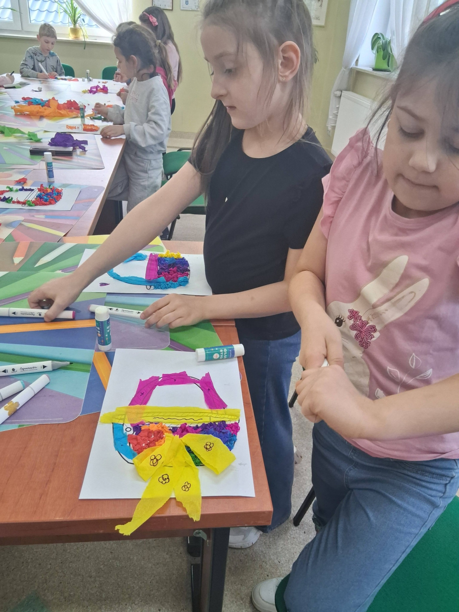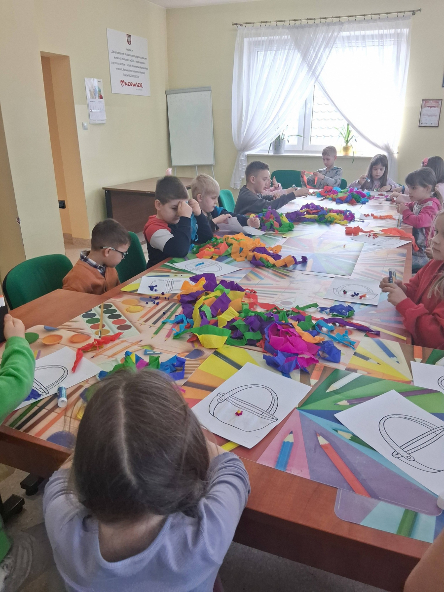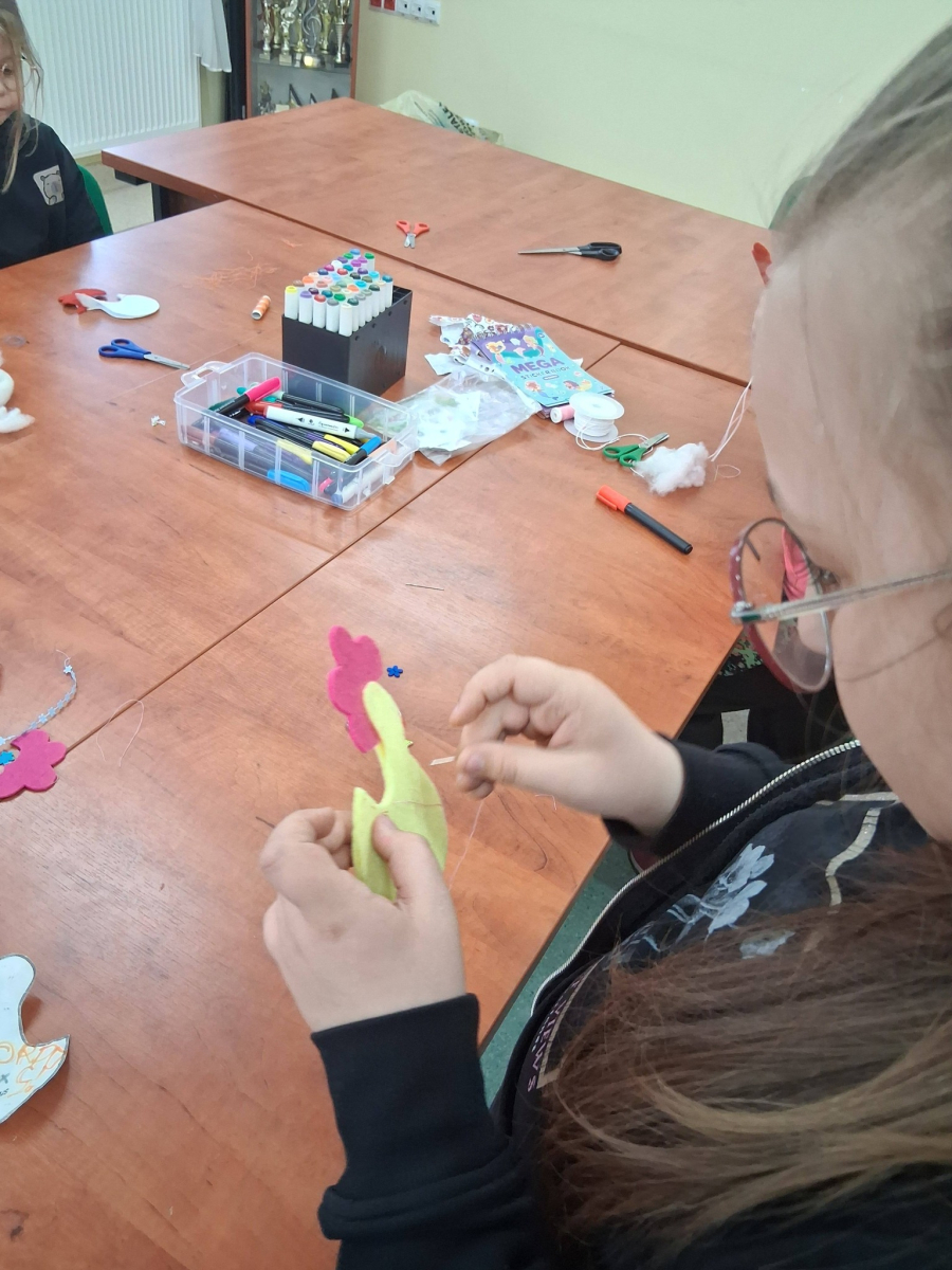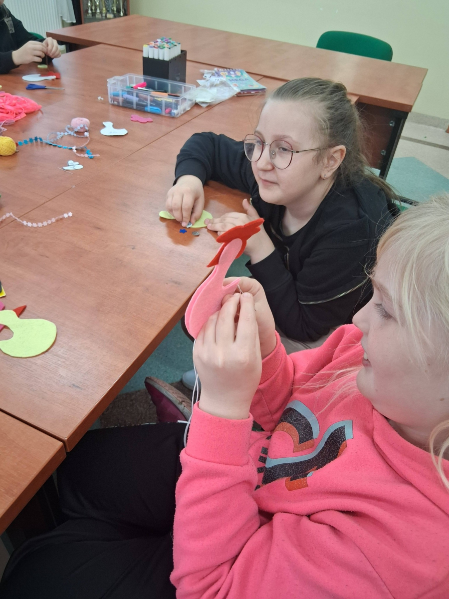 W poniedziałek, 30.03.2026, podczas zajęć kreatywnych dzieci z dużym zaangażowaniem przygotowywały się do nadchodzących świąt. Młodsza grupa wykonała urocze, kolorowe koszyczki i ozdobiła pisanki, które z pewnością będą piękną wielkanocną ozdobą. Starsza grupa również nie próżnowała – uczestnicy uszyli przepiękne koguciki z filcu. Zapraszamy na fotorelację.
