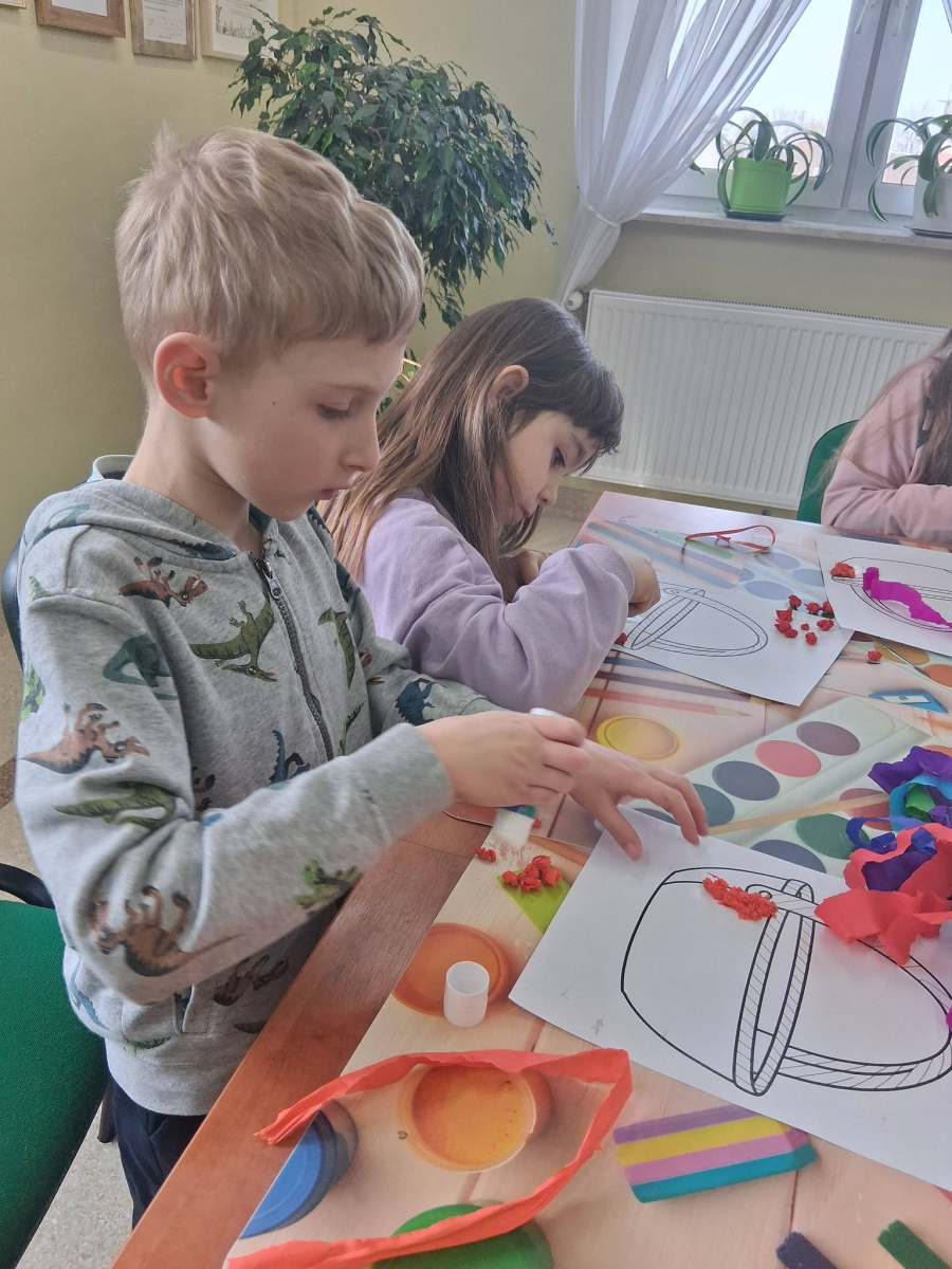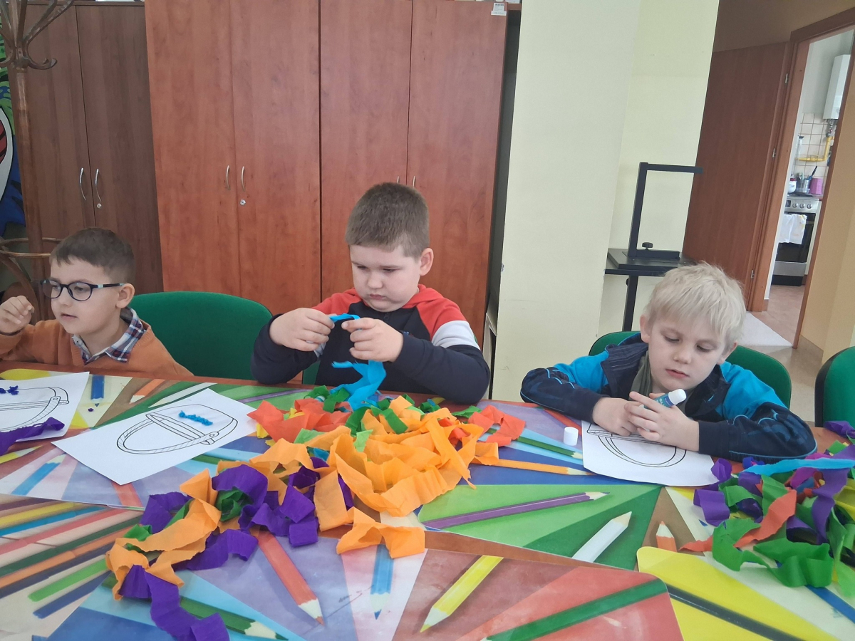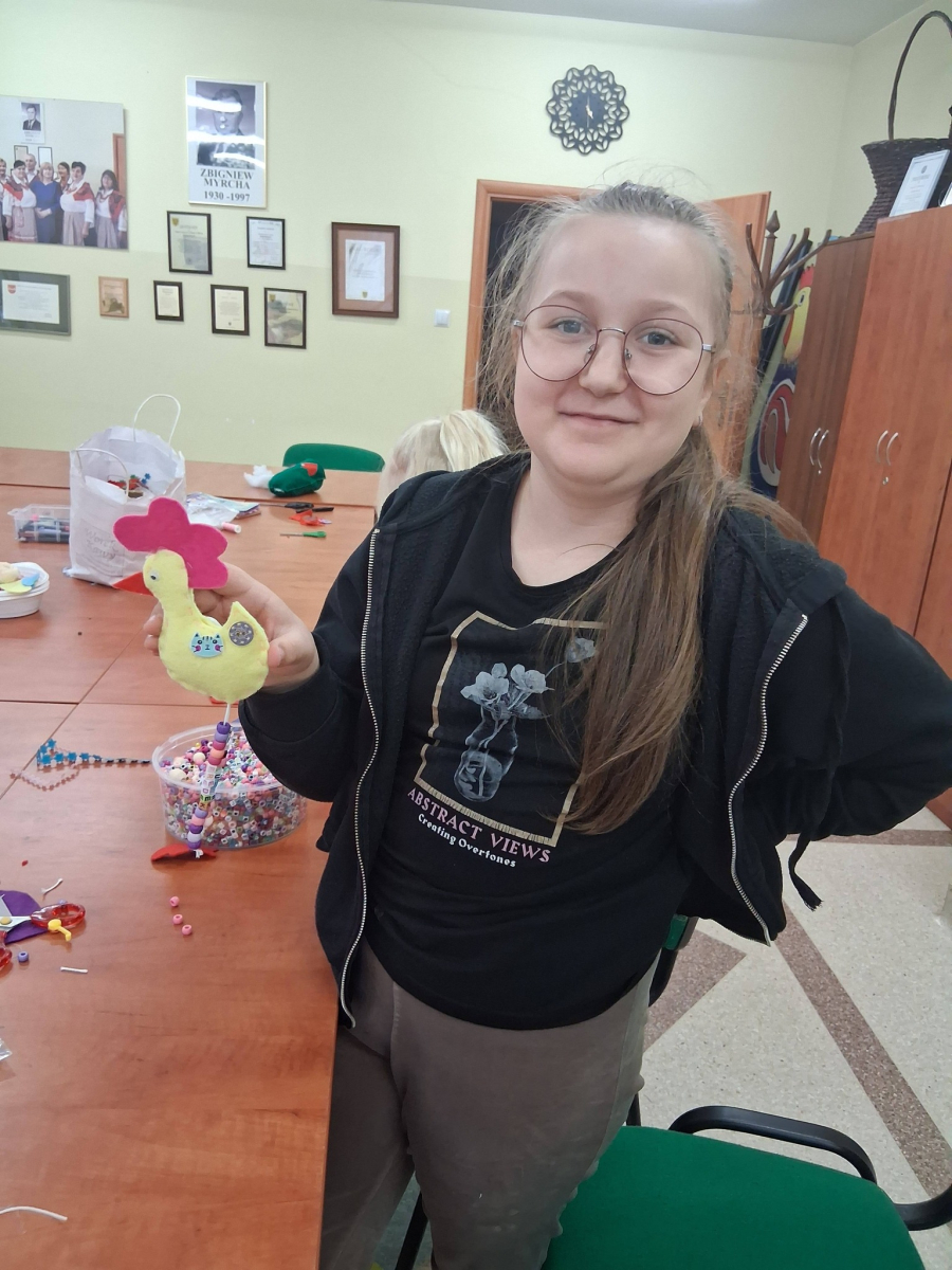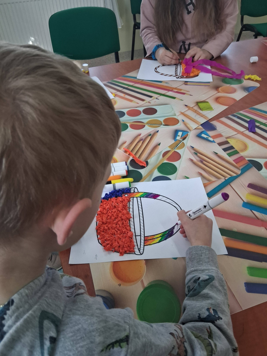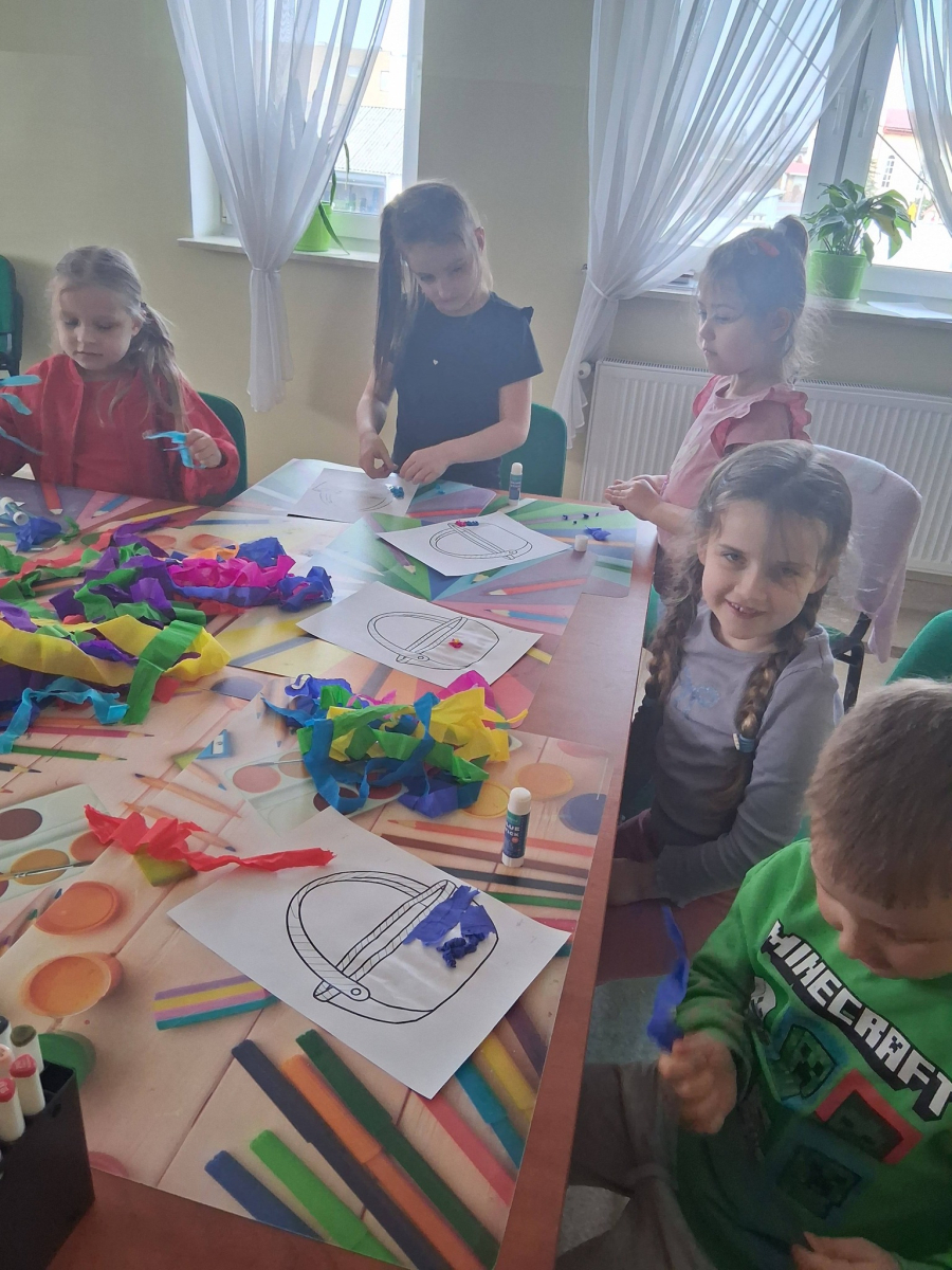 W poniedziałek, 30.03.2026, podczas zajęć kreatywnych dzieci z dużym zaangażowaniem przygotowywały się do nadchodzących świąt. Młodsza grupa wykonała urocze, kolorowe koszyczki i ozdobiła pisanki, które z pewnością będą piękną wielkanocną ozdobą. Starsza grupa również nie próżnowała – uczestnicy uszyli przepiękne koguciki z filcu. Zapraszamy na fotorelację.