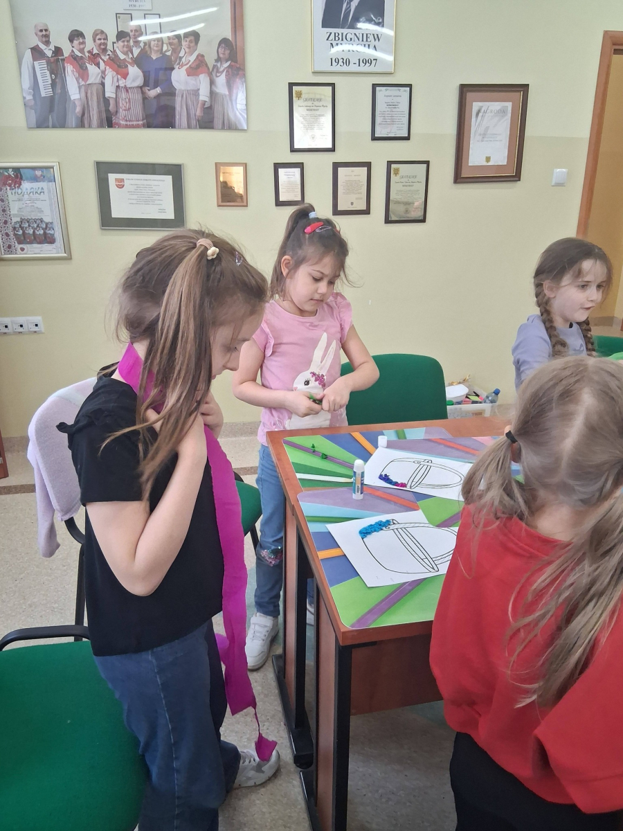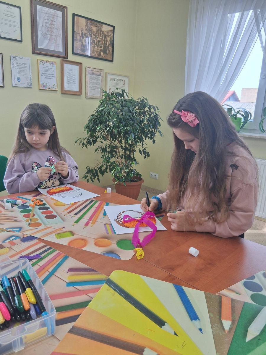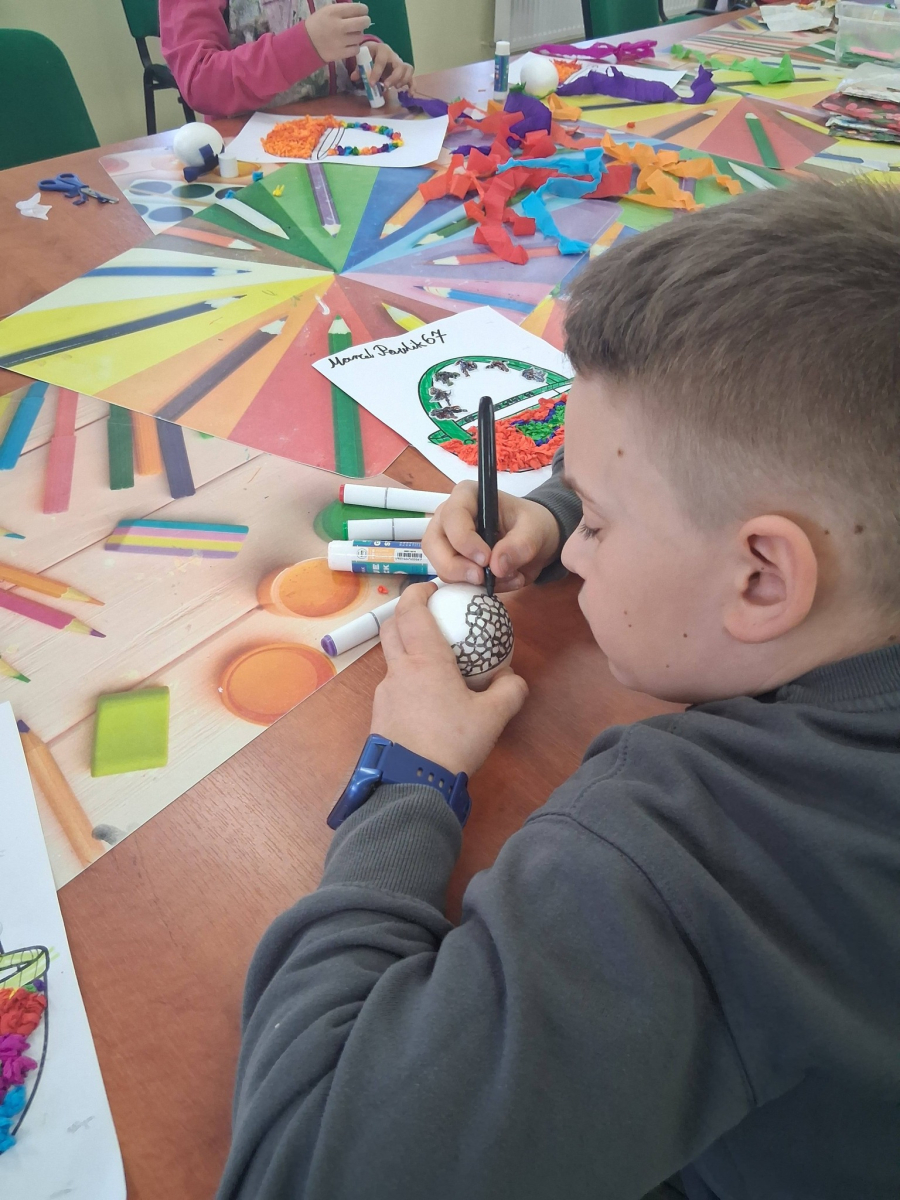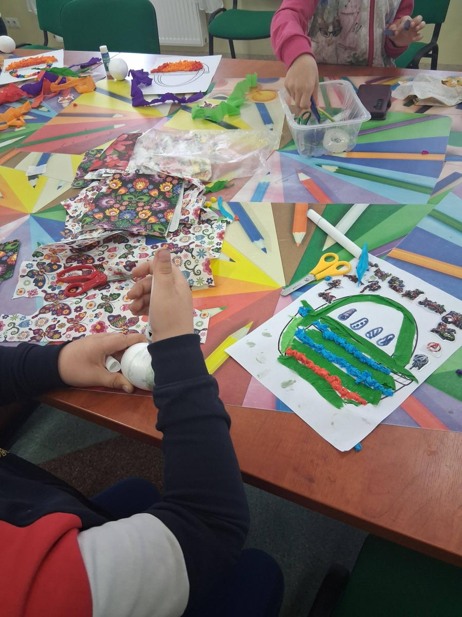 W poniedziałek, 30.03.2026, podczas zajęć kreatywnych dzieci z dużym zaangażowaniem przygotowywały się do nadchodzących świąt. Młodsza grupa wykonała urocze, kolorowe koszyczki i ozdobiła pisanki, które z pewnością będą piękną wielkanocną ozdobą. Starsza grupa również nie próżnowała – uczestnicy uszyli przepiękne koguciki z filcu. Zapraszamy na fotorelację.